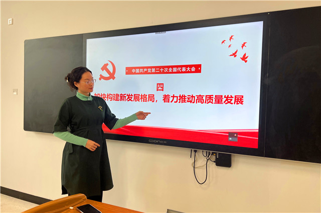 5月23日下午,人文社科系党支部在思学楼411教室组织开展了关于党的二十大精神的集中学习,本次学习由英语教研室李梦妍老师主讲,人文社科系全体教职工参加。