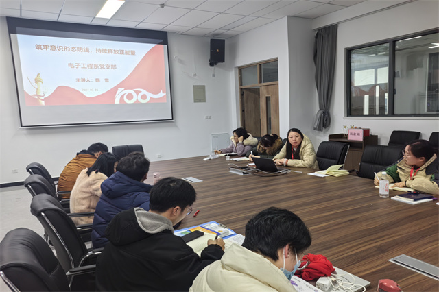 3月5日下午,电子工程系党支部开展主题为《筑牢意识形态防线,持续释放正能量》的专题政治学习。专题政治学习由党支部副书记陈雪领学,全系教职工参加学习。