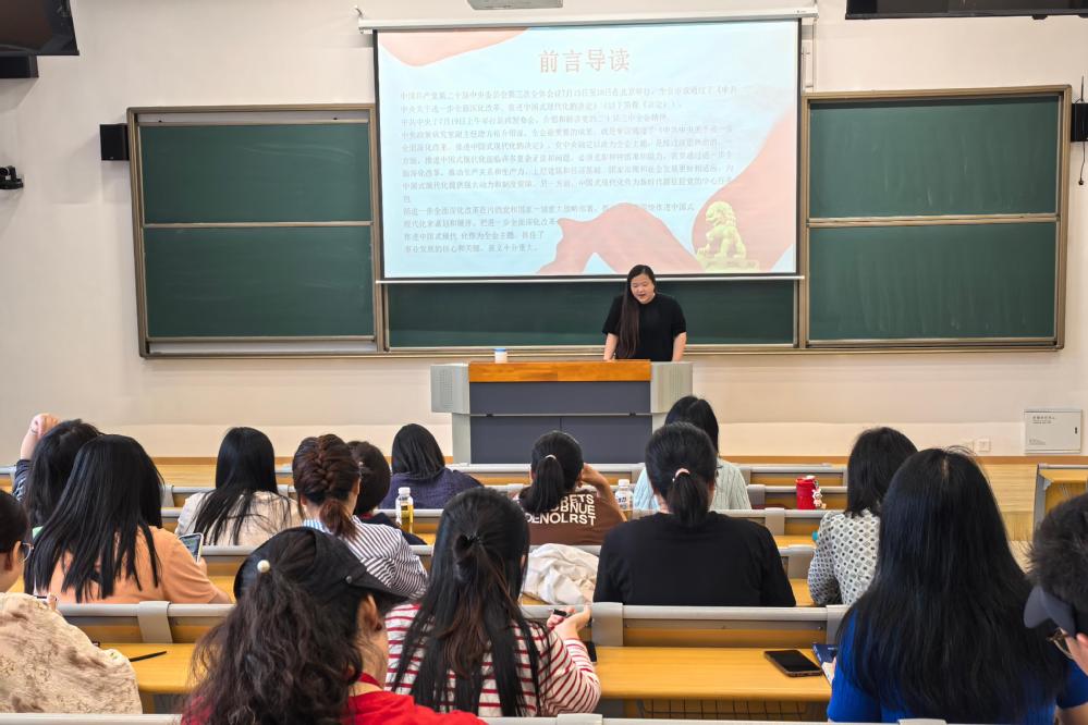 为深入理解和把握党的二十届三中全会精神,9月26日下午,人文社科系党支部在勤学楼206组织开展关于党的二十届三中全会精神的专题学习。本次学习由人文社科系党支部组织委员吴瑶老师主讲,人文社科系全体党员参加。