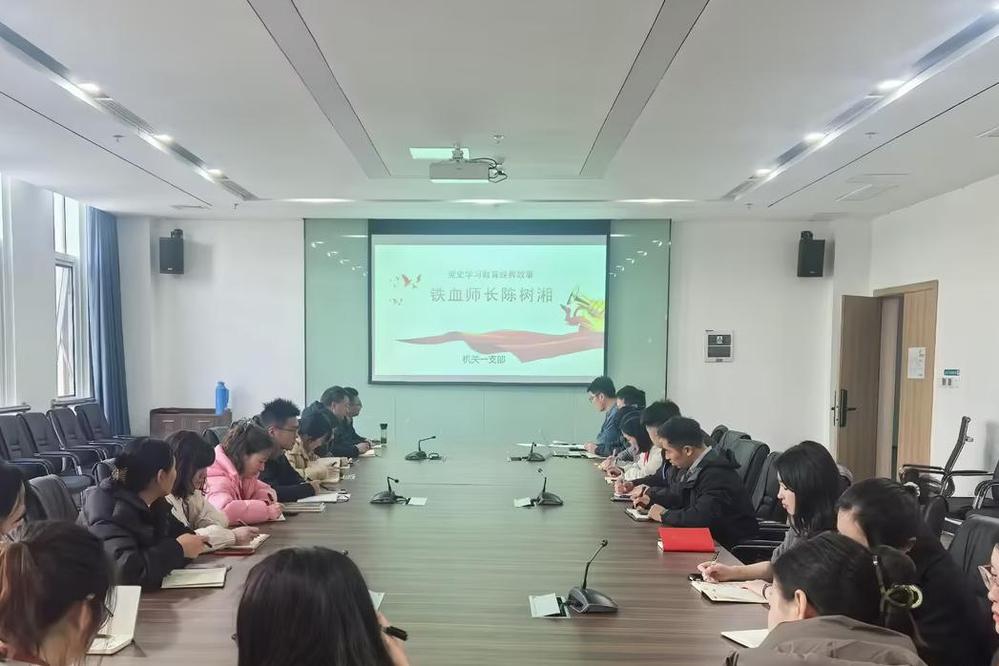 2月27日下午,机关一支部开展党史学习教育,学习铁血师长陈树湘的英雄事迹。本次学习由机关一支部组织委员辛鸽领学,支部全体教职工参加学习会。