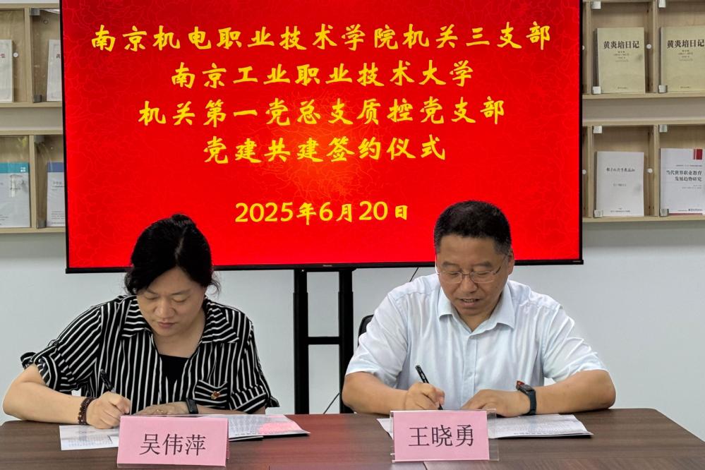 为充分发挥党支部的战斗堡垒作用和党员的先锋模范作用,进一步提高学校内部质量保证体系建设质量,促进学校高质量发展,2025年6月20日,南京工业职业技术大学质控党支部与我校机关三支部正式签订《基层党支部共建协议》,开启合作新征程。南京工业职业技术大学质控党支部书记王晓勇,开云手机官方版页面登录入口机关三支部书记吴伟萍,双方支部党员代表及相关部门负责人出席签约仪式。