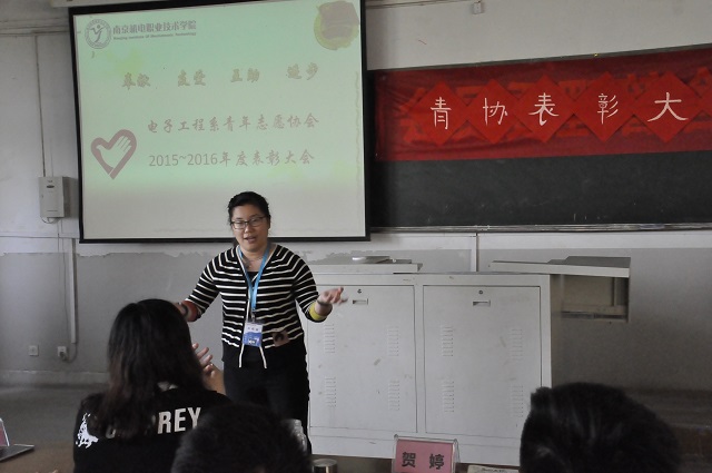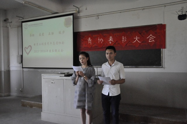 5月11日中午,电子工程系青年志愿者协会2015~2016学年年度表彰大会在教学楼A211教室隆重举行。电子工程系党支部书记吴伟萍、学院团委书记何文晓、社团指导老师贺婷以及青协的全体“小太阳”共同参加了本次颁奖仪式。