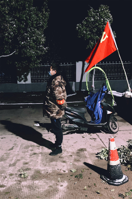 随着疫情的迅速扩散,1月底,各个地区都启动了公共卫生事件一级响应,谢志鑫所在的和县力阳镇也积极响应,采取了对小区进行封闭式管理和道路进行强化过往管控等措施来防止疫情传播。由于和县乡村道路数量多,小区分布点位散,单靠政府工作人员值守远远不够,急需大量志愿服务人员。放假在家的谢志鑫得知此消息,第一时间请战投身疫情阻击战。谢志鑫被安排在路口执勤点进行登记劝阻工作。除了做好登记提醒和劝阻工作外,谢志鑫还会帮助执勤点做消毒和宣传推广的工作。有的时候,他会为附近的居民运输蔬菜,想方设法做一些自己力所能及的事情。