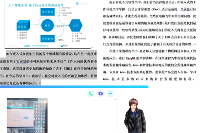 夏爱波高级工程师在直播课程中讲解了嵌入式软件和硬件的知识与应用,讲授了“硬件-接口-软件”的关系和在实际检查中要注意的细节。强调物联网除了“公有云”和“私有云”之外还有“云、管、端”的概念,同时通过一些案例的讲解,使学生了解了嵌入式在物联网中发挥的作用,如MbedOS操作系统和OneNet物联网的应用,另外还有基于EasyDL系统的AI应用。在直播课程中,夏工程师深入浅出,以实际应用案例为抓手,对抽象的原理进行了解析,使学生易接受、好理解。