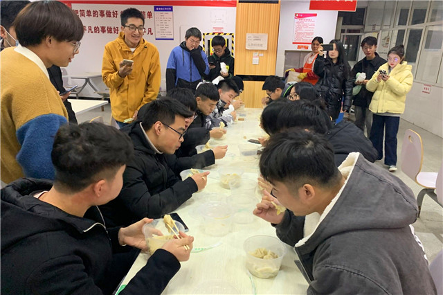 谈到此次冬至活动,团支书鲁程涛同学说:“以前冬至我们都是在自己的小家里一家人包饺子,但是今年很不一样,我第一次在学校参加这样的集体活动,大家一起吃饺子,希望我们能记住这次活动,让这份美好的回忆永驻在我们的大学回忆里。”