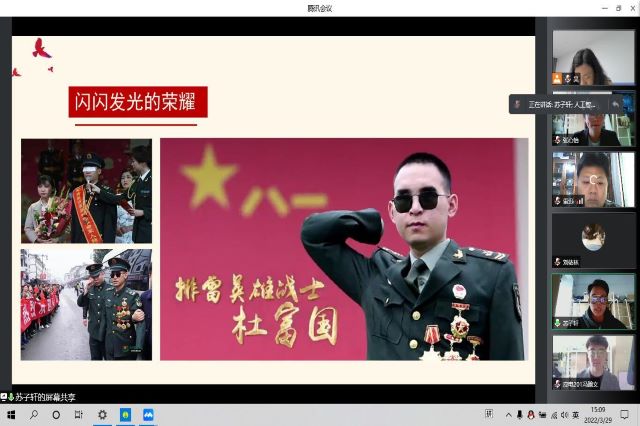 慕雪朝霜,毋改英雄意气,在这个春天,我们缅怀英雄,崇尚英雄,讲述英雄。为积极响应学院党建带团建的号召,我系于3月 22日下午开展“讲述英雄故事”线上云党课活动。此次活动由团总支书记林雪主持,党支部书记吴伟萍带领全系党员老师、团总支副书记刘子涵带领部分团员代表共同参加。