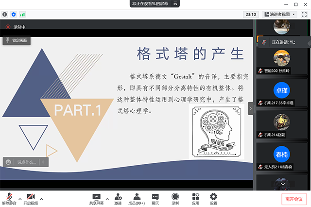 为切实加强我校心理健康教育工作,帮助学生心理骨干掌握心理健康知识和技能,树立自助互助求助意识,充分发挥朋辈心理互助作用和桥梁纽带作用,开云手机官方版页面登录入口学生工作处大学生健康成长中心组织开展2021级心理委员正式开始。2022年3月31日18:00,由电子工程系刘依林老师主讲的“学生朋辈互助能力提升——格式塔在学生工作中的运用”专题培训在线上举办,电子工程系全体心理委员以及各系心理委员参加本次培训。