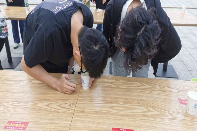 活动发起后,同学们纷纷响应,通过套圈、纸杯接水、抢板凳等小游戏释放自己的学习压力,营造健康的抗疫氛围。“战胜疫情,共克时艰”等套圈话语送出同学们对家乡、校园平安和师生健康的真挚祝福;纸杯接水的团结协作,坚定了大家战胜疫情的决心和信心;抢板凳小游戏,锻炼同学们的观察能力和反应能力,营造乐观向上的抗疫心理。