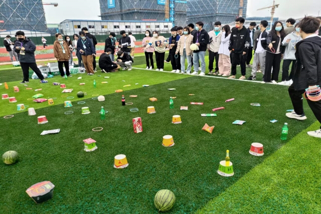 此次活动分为4个部分,前三个部分为充满童心的“三人四足”、“击鼓传花”、“一二三,木头人”,将每位参加者拉回了小时候的回忆,同学们的配合不够默契、手忙脚乱也为活动增添了一抹乐趣。通过前三轮可以积攒游戏奖券为最后环节的套圈游戏做准备。看着面前琳琅满目、摆放有序的奖品,手持奖券的同学跃跃欲试,奖券多的同学随手一扔与奖券少的同学考虑再三也成为鲜明的对比,欢呼声、加油声此起彼伏,西瓜、菠萝、自嗨锅成最为抢手之物,无论技术如何,每位同学收获了快乐,收获了礼物。