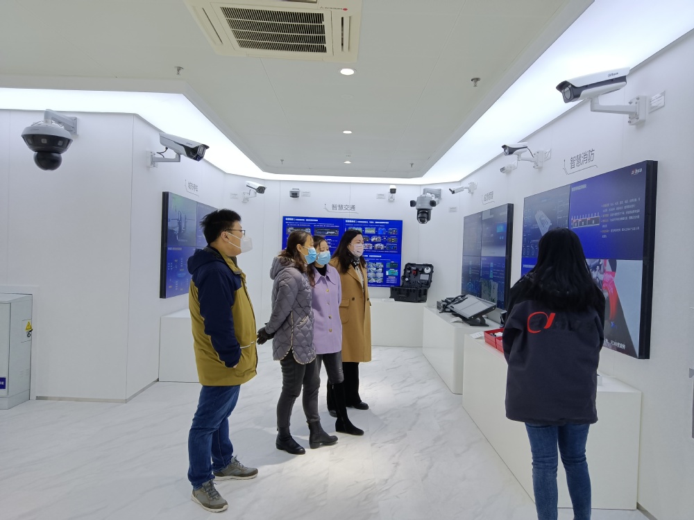 随后对相关教师展开培训。本次培训分为理论部分和实操部分。理论部分主要有安防概述、传输技术、工程规范和大华视频监控场景方案介绍。在了解安防基础知识、系统组成、发展方向的基础上认识视频传输的方式、所需要用到的音视频信号接口等,针对不同场景的需求对产品进行选型和配置,并遵守安防工程基本规范、安装工序。实操部分主要是走进大华企业的实训室,进行视频监控系统平台、人闸、车闸、AI相机等产品的实际操作,了解前沿产品技术,对产品的使用和维修进行学习和训练。