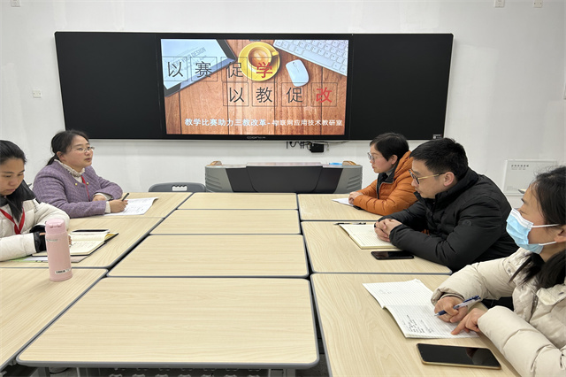 汇报结束后,教研室全体教师分别结合自身情况,大家热烈讨论了“三教“改革中“教师、教材、教法”和教学比赛之间的联系。 一致认为,教学能力比赛以教学团队为参赛对象,是教学能力比赛的竞赛主体。其次是教学能力比赛比什么?比的是16学时的专业(技能)课程的教学内容。而课程建设与教学内容改革的载体正是教材,教学能力比赛离不开教材。第三,教学能力比赛重在“能力”,“能力”由“比赛”这个平台外显,教师可以依托教学能力比赛的平台呈现教学模式、教学方法与手段。