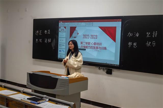 为强化“院-系-班-寝”四级心理危机预防干预工作机制,帮助心理委员更好的开展“朋辈互助”帮扶行动,4月6日下午,我系心理气象站组织各班心理委员在思学楼305开展“共情能力的发展与训练”主题培训活动。本次培训由电子工程系心理气象站汪慧慧老师主讲。