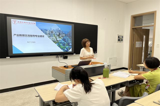 依据国务院办公厅印发的《关于深化现代职业教育体系建设改革的意见》文件精神要求,深入开展产教融合“打造行业产教融合共同体”,注重学生能力培养和工程实践教学,更好地培养适应现代工程技术和国民经济发展的高素质劳动者和技术技能人才。2023年9月邀请产业教授翟慧敏高级工程师进校与教师共同研讨专业建设,提升专业建设内涵。