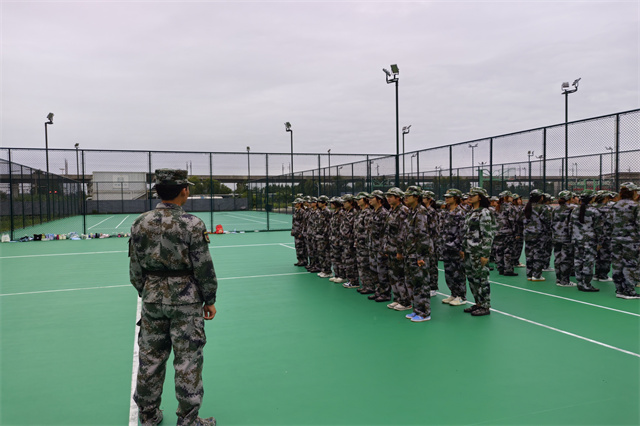 凉爽多云的天气为同学们的训练供给了不少便利,绿茵茵的青草和橄榄绿的迷彩军装相互辉映,让同学们显得活力十足。