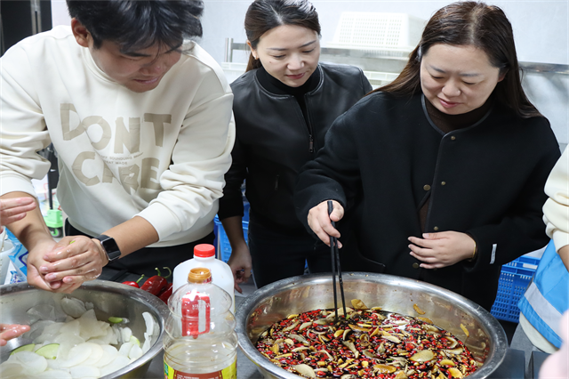 为弘扬中华优秀传统文化,营造节气氛围,丰富师生课余生活,下午1点,电子工程系党支部和机关第二党支部携手联建,在一粟堂举办“小雪腌菜 暖心相伴”活动,活动得到了学校党委委员、纪委书记、工会主席姜振宇的关心指导。