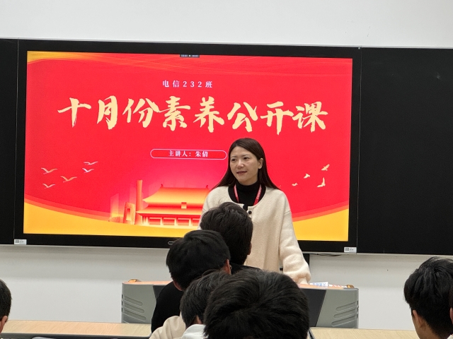 为激励和引领广大青年大学生深入学习贯彻习近平新时代中国特色社会主义思想、推动习近平新时代中国特色社会主义思想进课堂、进头脑,进一步加强理想信念教育、爱国主义教育和形势政策教育,2023年10月12日,我系朱倩老师在思学楼113主持召开了以弘扬传统文化为主题的素养公开课,电信232班全体同学参加了此次公开课。