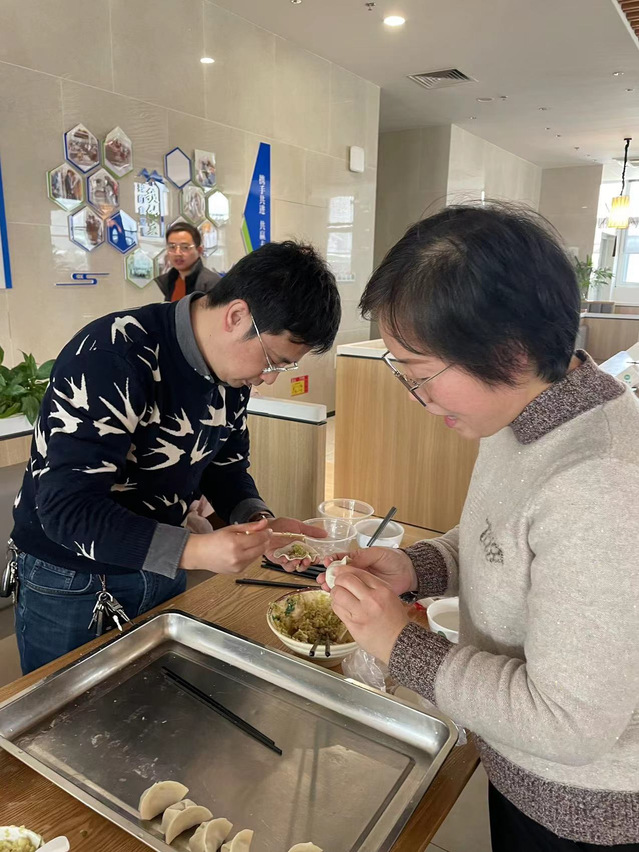 活动伊始,教职工们纷纷拿出自己的绝活,调馅、包饺子,各展所长。大家边包饺子边交流心得,欢声笑语不断。在包饺子的过程中,大家互相学习、互相帮助,充分展现了团队精神。