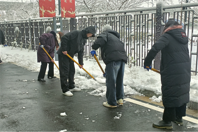 12月19日早晨6:50,志愿者们聚集在慎行楼下,带着扫雪工具,按照提前部署的区域,分三个小队进行片区除雪。室外温度只有零下6℃,但这丝毫挡不住大家铲冰除雪的热情。面对坚硬的冰层、厚厚的积雪,志愿者们充分发挥团队协作优势,分工合作、配合默契。他们有的挥舞扫帚,有的拿着铁铲。扫的扫,铲的铲,铲累了,换换手,手冻了,呵呵气。经过一个小时的劳动,身体也暖和了。