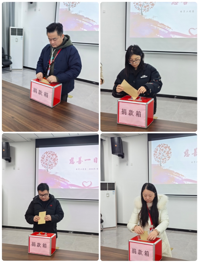 为积极响应南京市政府提出的“慈善一日捐,济困送温暖”号召,2024年1月12日中午12:30,电子工程系全体教职工积极捐款,支持扶贫济困。活动中,教职工慷慨解囊,用实际行动诠释了扶贫济困、乐善好施的传统美德,为扶贫事业贡献自己的一片爱心。