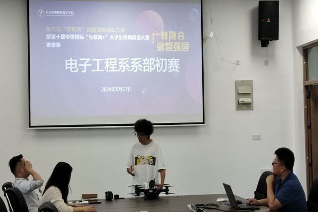 第九届“知链杯”创新创意创业大赛电子工程系初赛于2024年5月17日中午12点30分在慎行楼304会议室举办,系主任姚小冬、副主任丁向琴、系办主任雷迅担任本次比赛的评委。此次大赛旨在激发学生的学习热情与潜能,培养大学生的创新意识、创意思维、创业能力以及团队合作精神,为学生提供了一个展示自我、实现梦想的舞台。