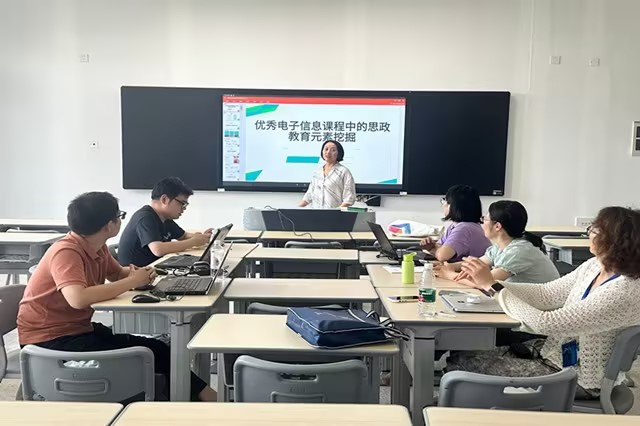 2024年6月11日,智能电子应用教研室在思学楼103开展关于电子类课程思政元素挖掘的专题研讨会。本次研讨会围绕思政教育与专业教育的融合、思政资源与课程教学、思政教育与学生成长、思政教育与社会责任以及科技与创新教育五个主题展开。