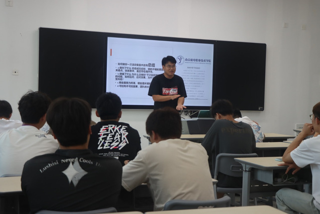 首位分享人为校学生会生活部副部长赵梦楠,他以不久前举办的端午节活动为例,向同学们讲述承办一个活动的总体流程、各种细节和注意事项。同时,他特别提到,要提高解决突发问题的能力。