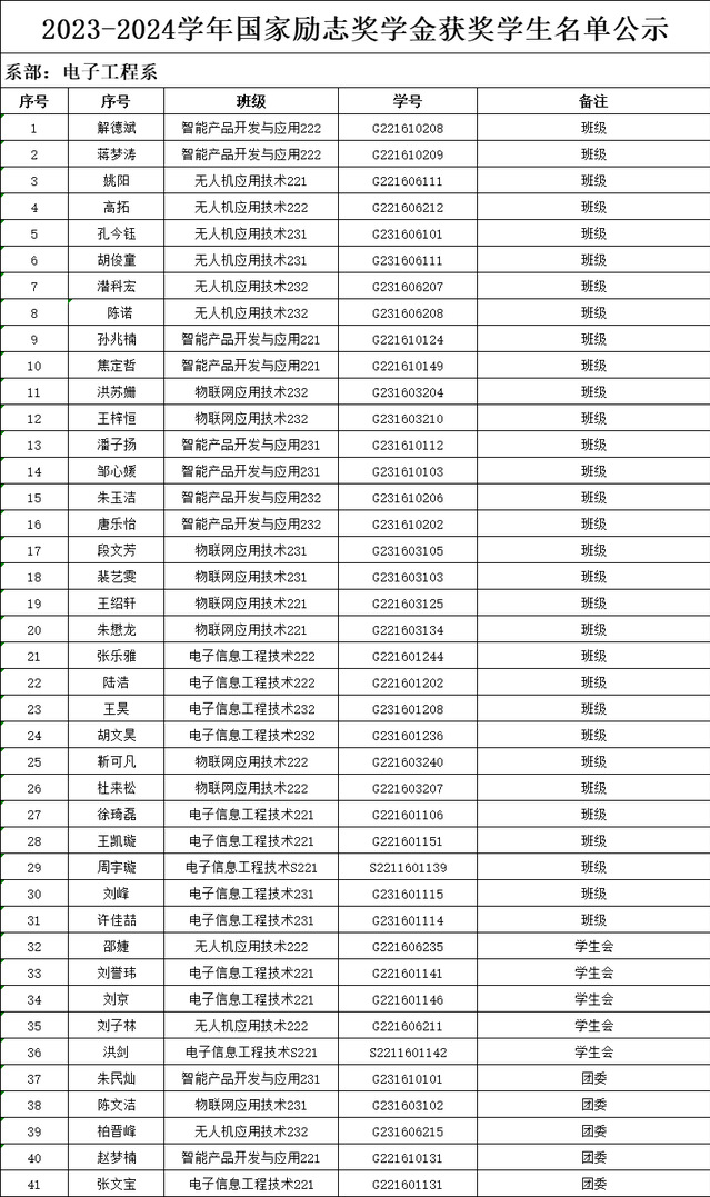 现将2024年国家奖学金申报学生名单向全系进行公示,公示时间为5个工作日。