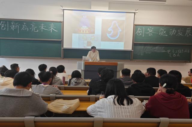 勒可凡神采飞扬地介绍了自己的创客经历,介绍了他在自己成长道路中是如何将创新思维和自身成长结合在一起的。他在现场与同学们交流互动,为同学们解答在创客创新上的疑惑,为电子工程系的同学们打开了通往创客之路的一扇门。