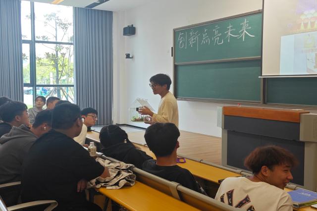 接着支教社社长勒可凡为在场学生展示了自己的创客作品,从作品创意的产生到制作过程,再到作品的呈现,让电子工程系的同学们对创客产生浓厚兴趣。