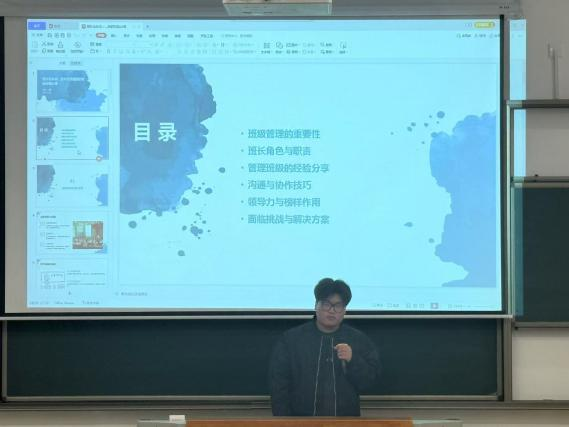 电信232班班长王昊率先分享经验。他着重强调了班长作为学生与辅导员之间关键沟通桥梁的重要性。班长不仅要及时了解同学们的需求与问题,更要精准、客观地反馈给辅导员,确保信息畅通无阻。在得到辅导员的指示后,迅速且有效地为同学们排忧解难,切实履行服务同学、协助老师管理学校事务的双重职责,明确自身角色定位,为班级的和谐稳定发展贡献力量。