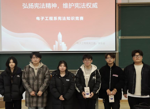 2024年12月10日,宪法知识抢答竞赛在电子工程系热烈展开,竞赛旨在通过趣味性的抢答形式,普及宪法知识,提升同学们的法治素养。此次竞赛吸引了众多热爱法律、追求公正的学生积极参与。由电子工程系学生会主席团与部长担任评委,无人机232班班长卞成杰担任主持人。