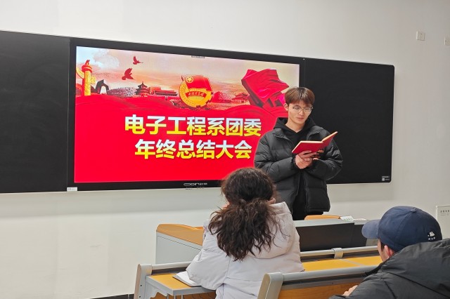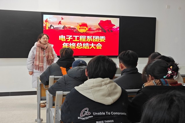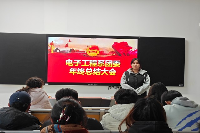 近日,电子工程系团委年终总结大会在一站式学生社区思学楼201顺利召开,系团委全体学生干部、干事齐聚一堂,全面回顾过去一年的工作成果与经验并进行交流总结。