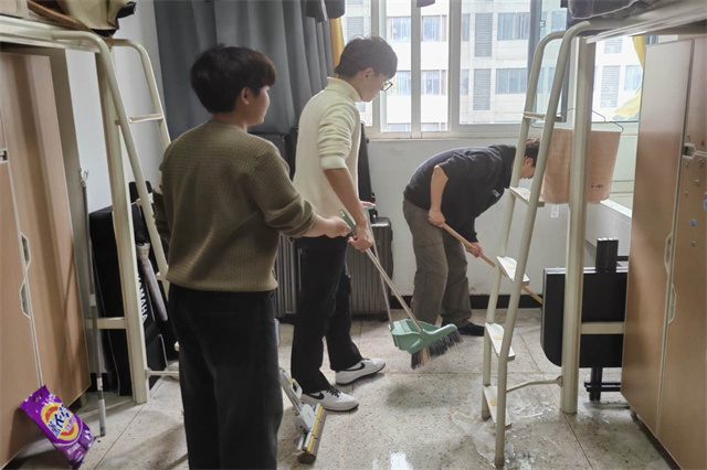 在老师们的带领下,学生们也积极参与其中,大家齐心协力,共同为宿舍的清洁贡献自己的力量。经过一下午的辛勤劳动,原本杂乱的宿舍焕然一新。地面干净整洁,门窗明亮如新,个人物品摆放得井井有条。看着自己的劳动成果,师生们都露出了满意的笑容。此次活动不仅改善了宿舍的卫生状况,还增进了师生之间的情感交流,让学生们感受到了来自老师的关怀与温暖。