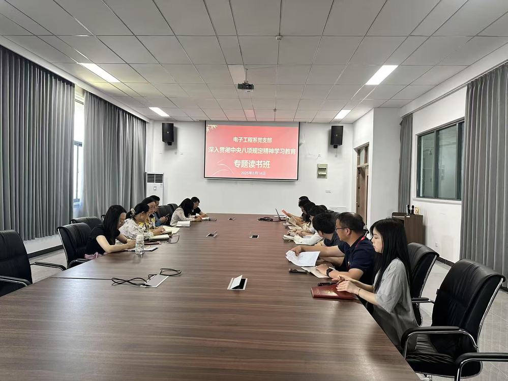 为持续强化党员教师作风建设,深化党性修养内涵培育,电子工程系党支部于2025年5月14日,在慎行楼304会议室继续围绕《习近平总书记关于加强党的作风建设论述摘编》中的两大重要版块——“坚持正风肃纪反腐相贯通”“使党的作风全面纯洁起来,以优良党风带动社风民风向上向善”展开深入学习。老师们通过研读论述原文、分享个人感悟、结合实际案例讨论等形式,力求深化对中央八项规定精神的理解,将理论知识切实转化为实际行动,积极践行优良作风。