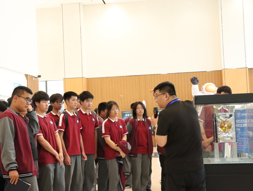 下午13:30,新港中专师生在我校志愿者引导下开启参观之旅。蓝岛创客中心内,候老师带领学生探秘卫星地面接收站实验室与卫星测控中心。通过信号接收模拟装置演示与卫星运行控制互动体验,同学们直观感受“航天级”实践教学场景。当看到我校学生自主设计的卫星火箭模型、3D打印智能设备时,来访师生纷纷驻足拍照,点赞创客教育成果。