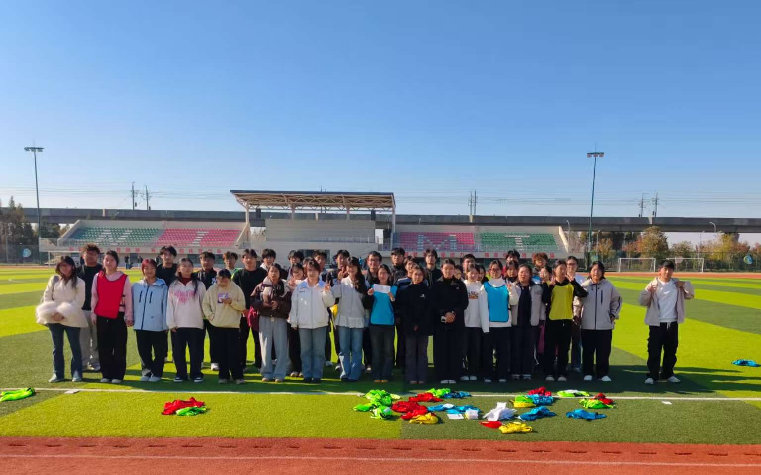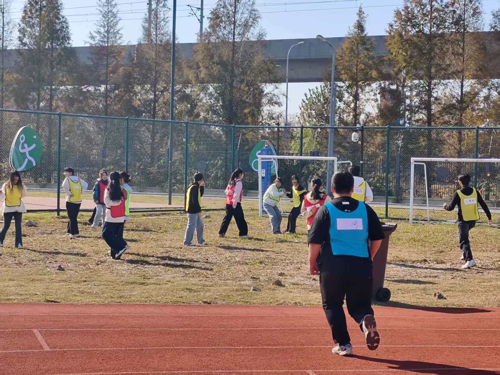 活动伊始,同学们身着不同颜色的分队背心,在绿茵场上集结合影——鲜亮的色彩衬着青春的笑脸,成为秋日校园里一抹生动的风景。合影过后,趣味互动环节随即开启:大家围坐成圈,或交流战术、或分享日常,轻松的氛围让彼此的距离悄然拉近。