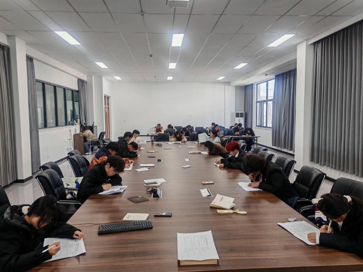 为全面检验学习成果,培训班于2025年11月26日中午在慎行楼304举行结业考试。考试内容涵盖党章党规、党的基本理论、党史知识及培训重点内容,题型科学合理,考风严肃严谨。全体学员认真作答,展现出良好的学习风貌和扎实的理论基础。