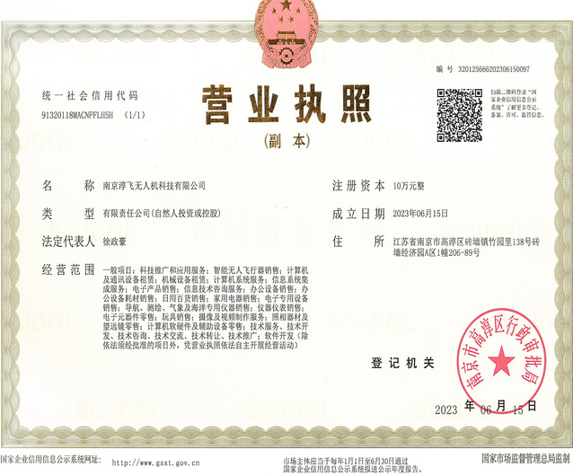 中航金城无人系统有限公司、上海拓攻机器人有限公司、陈福明农业种植合作社、南京港华燃气有限公司、南京木牛自动化系统有限公司、江苏启航航空科技有限公司、中国电子科技集团公司第十四研究所、中国电子熊猫集团有限公司、南京乐骥科技电子有限公司、南京地铁集团有限公司、南京钟山苑航空技术有限公司等。