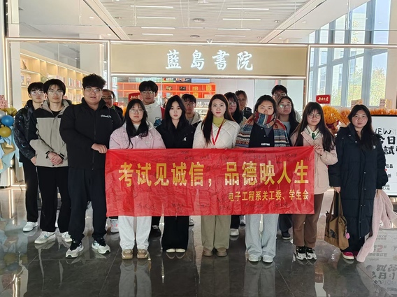 12月12日,在充满学术氛围的蓝岛书院内,电子工程系关心下一代委员会、系学生会联合举办了一场诚信考试承诺活动。学生们齐聚一堂,纷纷在一条印有“考试见诚信,品德映人生”的横幅上郑重签名,以此表达对即将到来的四六级英语考试及期末考试的诚信态度与坚定决心。此次活动进一步强化了校园内的学风建设和诚信文化。