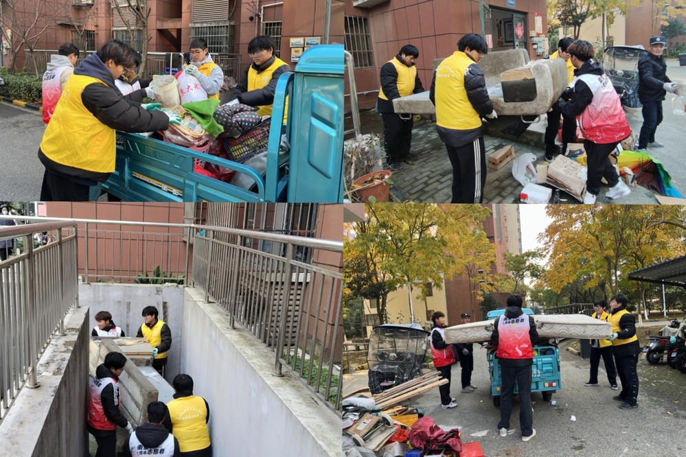 完成地下室清理后,同学们又贴心地将老人们不便处理的杂物一件件稳稳搬到家门口,方便老人取用整理。其间,大家相互搭把手、传物件,接力式的配合尽显默契,遇到重物,男生主动多承担,女生则帮忙维持搬运路线顺畅,团队协作行云流水。