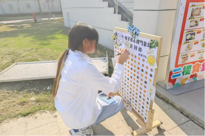 为更好关注广大师生身心健康成长,电子工程系心理气象站以一抹独特的微笑,为校园添上了温暖的一笔。10月31日-11月14日,系关心下一代工作委员会、系心理气象站组织学生在“一站式”学生社区展开了一场别开生面的师生画笑脸活动。