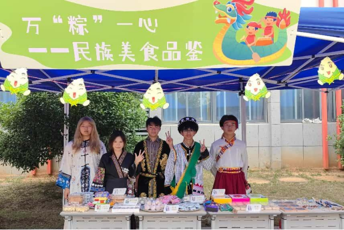 当端午粽香遇见民族风情,会碰撞出怎样的火花?5月27日,在端午节即将来临之际,红石榴班依托学校“同心筑梦·礼敬国粹”铸牢中华民族共同体意识端午节系列活动,开展端午民族美食文化体验活动。通过美食品尝、饰品试戴、服饰体验等互动形式,为师生呈现了一场别开生面的民族文化盛宴。