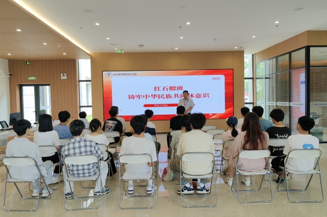 红石榴班辅导员、关工委秘书钱莉娇老师围绕铸牢中华民族共同体意识应知应会知识进行系统讲解。她通过深入的理论阐释,使在场同学深刻认识到民族团结是实现中华民族伟大复兴的基石,每一位同学都肩负着维护民族团结、传承民族文化的使命。钱老师特别强调,新时代青年要主动担当起促进民族团结、传承优秀民族文化的历史使命,让民族团结之花在校园绚丽绽放。