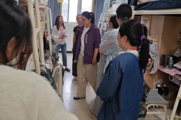 活动前期,人文社科系党支部已对工作进行周密部署,明确活动流程与分工。当天下午12:40,学校党委委员、纪委书记姜振宇及人文社科系与马克思主义学院领导班子均积极参与,与全体党员教师一同准时在静思苑宿舍楼下集合,展现出对新生关怀工作的高度重视。在简短明确任务分工后,大家以党小组为单位,迅速投入到宿舍走访工作中,展现出党组织凝心聚力、高效服务新生的良好风貌。 此次走访范围全面覆盖静思苑、润泽苑两大宿舍区的多个楼层,三个党小组分别负责不同区域的新生宿舍走访任务,确保能精准对接每一片区的新生群体。为进一步提升走访效率与精准度,新生宿舍名单已提前上传至工作群,供党员教师随时查阅参考,让服务更具针对性与实效性。 走访过程中,党小组组长们切实履行统筹职责,合理分配组内党员教师任务,明确分工、压实责任,保障走访工作有序推进。党员教师们带着热情与关怀走进每一间新生宿舍,主动与新生拉起家常,耐心询问他们的入住适应情况,细致了解生活中遇到的困难与需求,从宿舍设施使用、生活物资采购,到校园环境熟悉、学习规划制定,都给予了细致的指导与建议。面对新生提出的疑问,教师们一一耐心解答;对于新生反映的问题,认真记录并承诺及时协调解决,用实际行动让新生感受到系部党组织的温暖与学校的关怀。
