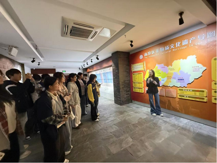 在高淳非遗展示馆,同学们在讲解员的引导下,系统了解了高淳民歌、桠溪竹马、高淳木雕等多项国家级、省级非物质文化遗产的历史渊源与传承现状。馆内陈列的精美木雕摆件、古朴的民俗器具,让同学们直观感受到传统工艺的精湛技艺与文化底蕴,大家不时驻足拍照、交流感悟。