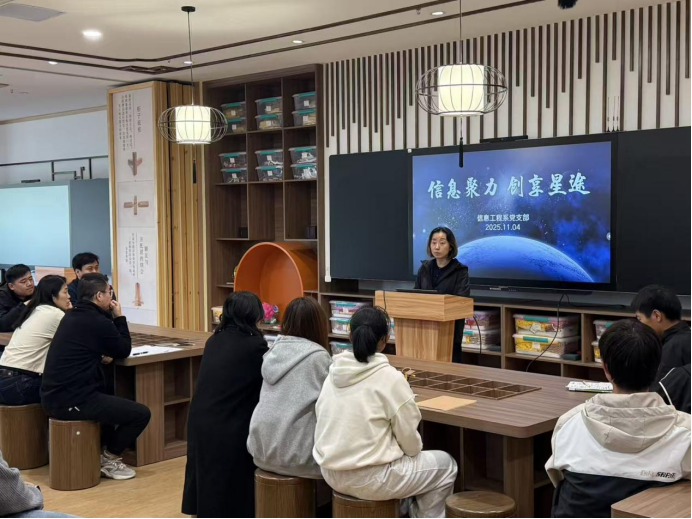 11 月 4 日,信息工程系以“信息聚力,创享星途” 为主题的创客周启动仪式在创客工坊隆重举行。本次活动不仅是系部激发团学骨干创新热情、搭建创意转化交流平台的重要举措,更是系部关心下一代工作重点实践项目,标志着为期一周的“创新赋能青年成长” 主题系列活动正式拉开序幕。信息工程系主任王国珍、党支部书记陈雪、青年统战委员兼关心下一代工作委员会秘书郝麒、办公室主任郑旻璐,以及系部专业团队老师孟威、黄婉晴,专利公司指导老师及全体团学骨干共同出席仪式,在创新氛围中传递关怀,助力青年成长。