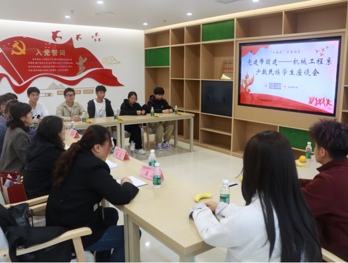 为深入贯彻落实立德树人根本任务,切实关心关爱少数民族学生成长成才,11月7日,机械工程系关工委主任、系党支部书记胡枫受邀走进一站式学生社区,与来自维吾尔族、蒙古族、回族等多个民族的10余名学生代表齐聚一堂,召开机械工程系少数民族学生座谈会。系关工委秘书唐锋、系团委书记王晨歌、机械工程系党支部纪律委员奚霞、机械工程系党支部宣传委员桑晶及辅导员代表杜方俊陪同参与。