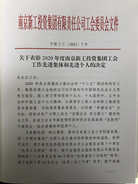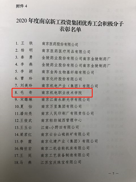 4月28日下午,南京新工投资集团工会组织开展庆“五一”先进表彰活动。学校工会荣获2020年度新工集团工会“先进基层工会组织”荣誉称号、培训处毛奇处长被授予2020年度新工集团“优秀工会积极分子”荣誉称号。