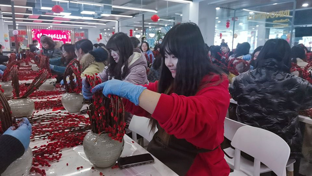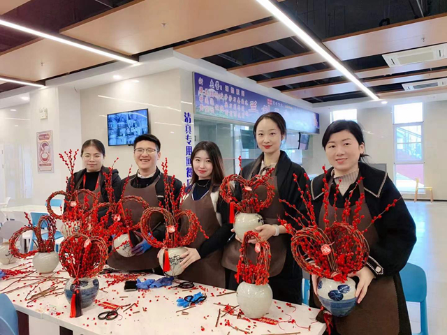 贺新春插花活动特别邀请了插花导师进行现场教学。近130名老师参加元宵花手工DIY,在插花导师手把手地指导下制作完成了属于自己的家装盆景。老师们纷纷表示,红色的元宵花为即将到来的虎年增添了浓厚的节日气氛,非常感谢工会的贴心安排。