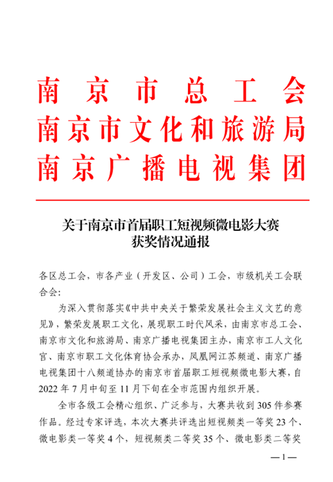 近日,南京市总工会、南京市文化和旅游局、南京广播电视集团公布了南京市首届职工短视频微电影大赛获奖情况(《关于南京市首届职工短视频微电影大赛获奖情况通报》),学校工会上报的短视频《喜迎二十大,军姿展芳华》获得短视频类二等奖。